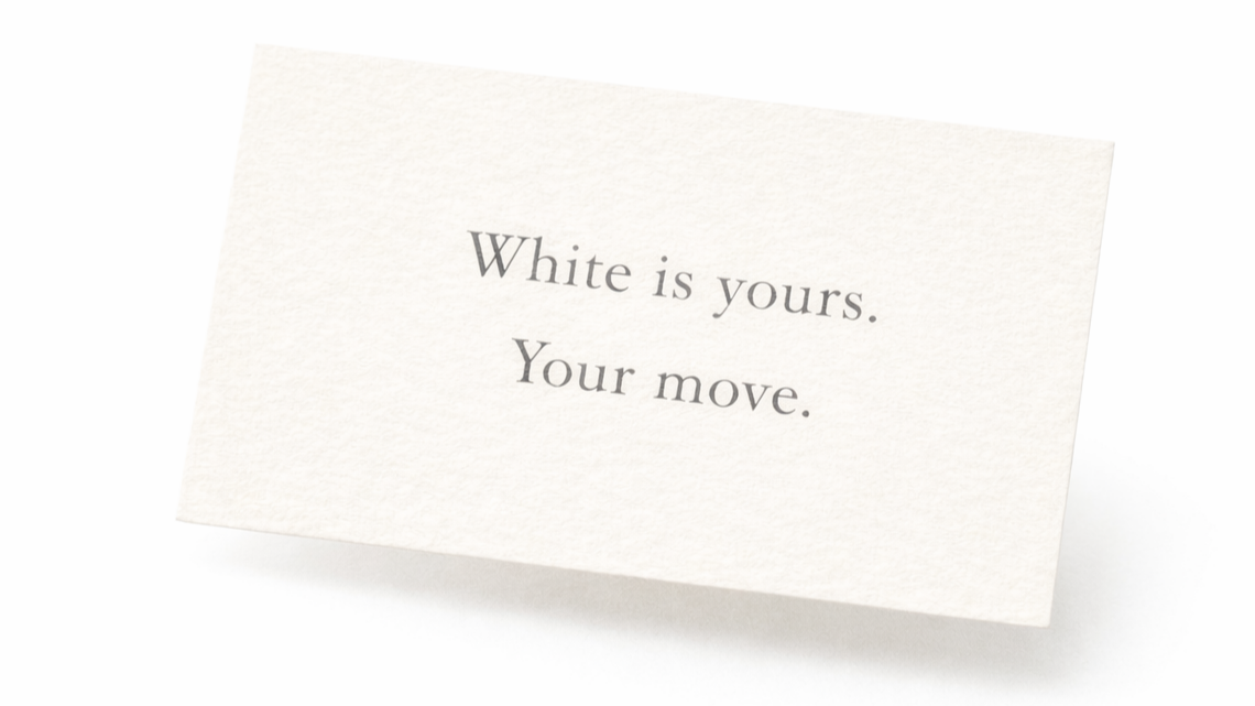 Black’s move card is stamped and placed in the mail. Again, another few days or weeks pass.