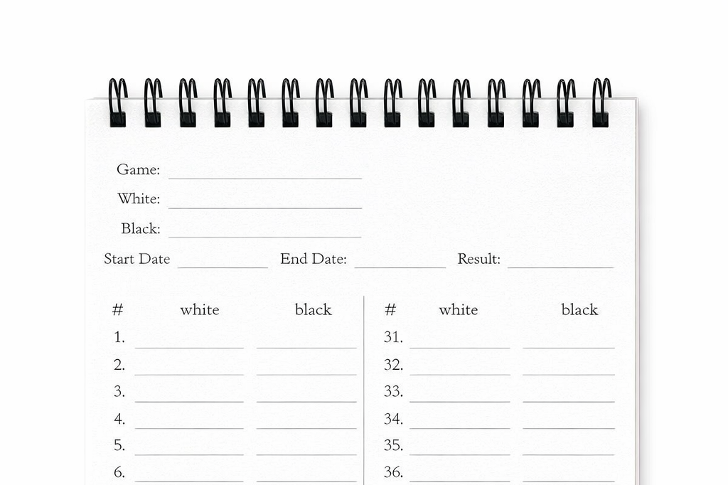 White considers the opening position and records the first move in standard algebraic notation (e.g., 1. e4).